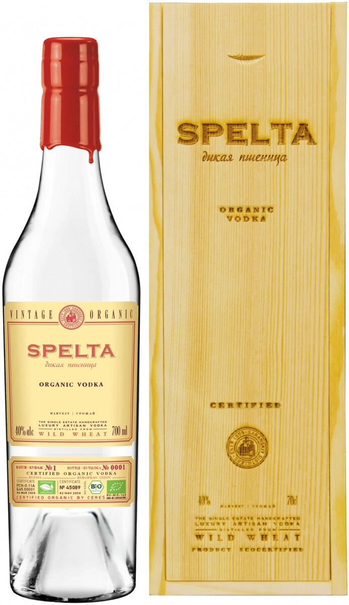 Водка Спельта — органическая водка премиум-класса, созданная из спельты и произведённая на Саранском ЛВЗ в России. Напиток разработан с использованием сертифицированного зерна спельты и чистой артезианской воды, что подчёркивает натуральный профиль сырья и технологическую аккуратность производства. Продукт представлен в стеклянной бутылке и поставляется в деревянной коробке, что делает его удобным вариантом для подарка и презентации. В характеристиках отмечены органический статус и премиальный класс, а также тип сырья — пшеница спельта, подтверждённый европейскими стандартами сертификации. Аромат водки мягкий и приятный, с лёгкими пшеничными оттенками, вкус гармоничный, чистый и согревающий, с длительным послевкусием. Рекомендуется подавать охлаждённой, напиток сочетается с традиционными блюдами русской кухни, включая мясо, птицу, дичь, горячие супы, блинчики и соленья, а также подходит для использования в коктейлях. Информация в описании основана на заявленных производителем характеристиках.