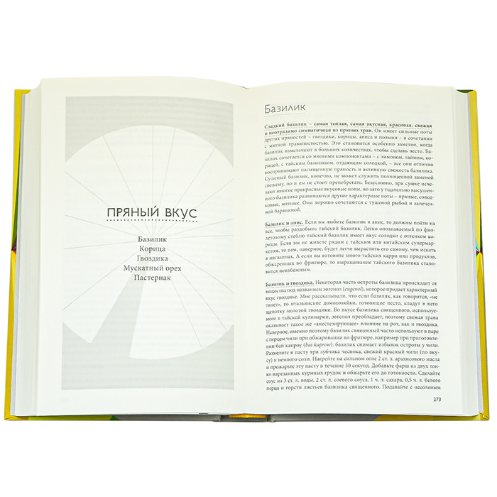 Помимо классических сочетаний, таких как свинина-яблоко, огурец и укроп, в словаре можно встретить современные пары — козий сыр и свекла, лобстер и ваниль, а также нежелательные сочетания: лимон и говядина, черника и грибы и т.д.