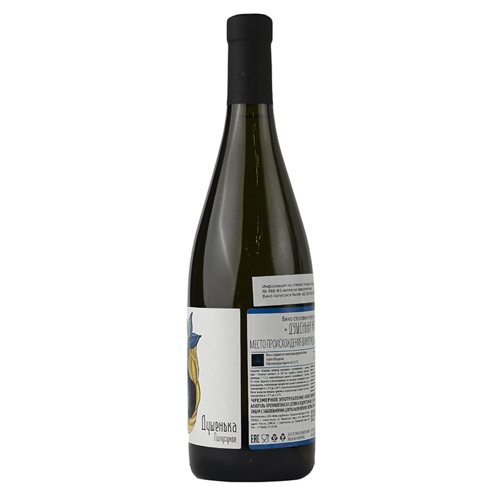 Вино имеет светло-золотистый цвет и выраженный сортовой аромат, в котором доминируют белые семечковые плоды. В гармоничном освежающем вкусе фруктовая линия продолжается, дополняясь деликатной кислинкой, лёгкой сладостью и ощутимой горчинкой в финале. Вино прекрасно дополнит рыбные блюда, холодные закуски и станет отличным аперитивом.