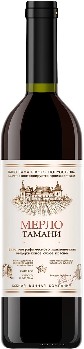 Вино Merlot Tamani, Yuzhnaya Vinnaya Kompaniya, 0.75 л